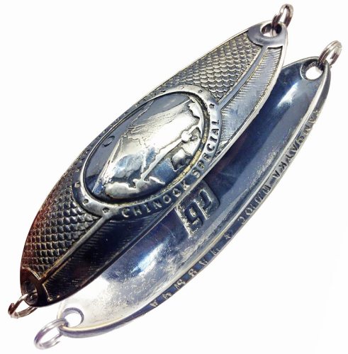 Первая блесна для Чавычи (Чинук) имеет гладкую внутреннюю поверхность, поскольку от внутренней, вогнутой поверхности в значительной степени зависят игра блесны. Поперечная изогнутость блесны выполнена по эллипсу, а не по радиусу, как на подавляющем большинстве ШТАМПОВАННЫХ блёсен. Продольная кривая выгнутости имеет небольшую S-образность, причем кормовая часть продольного профиля выполнена по методу BEEGLE CURVE (по-русски данное семейство кривых у математиков называется собачья кривая). По таким кривым строится большинство авиационных профилей.