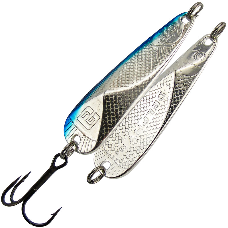 Высокотехнологичная блесна со сложной геометрией, имеет смещенный центр тяжести для дальнего заброса. Благодаря передней выемке, блесна имеет хороший угол подъема, что в свою очередь дает возможность эффективно ловить не только в поверхностных слоях, но и джиговать ей у дна и в толще воды.