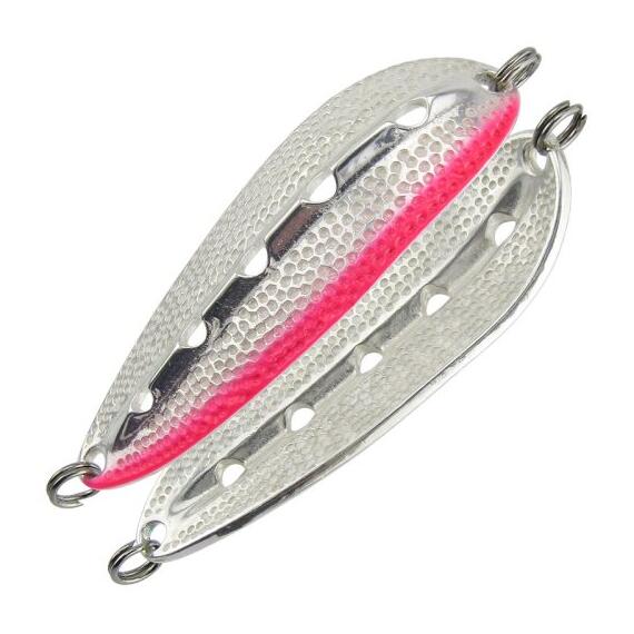 Блесна работает в широком диапазоне скоростей проводки, а также при ловле в отвес, допускает активную анимацию. Как следствие - добычей становятся не только лососи, но и жерех, судак, сом - на юге, озерный голец Таймыра и Кольского полуострова, жерех и щука на больших водохранилищах.