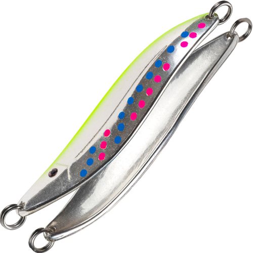 Растущий интерес к ловле лососей на Дальнем Востоке, (Камчатский край и Сахалин) и ставшая уже культовой рыбалка на Кольском полуострове, сподвигла компанию RB, выпустить еще одну версию блесны для Семги, Чавычи, Кижуча и Кеты. В новинке были учтены пожелания рыболов по улучшению работы приманки в разнородных потоках реки. Блесна стала более сбалансированной и лучше оптимизируется под различные условия на реке. В цветовой гамме расцветок была представлена уникальная голографическая 3D система покраски блесен с применением UV лаков (ультрафиолетовое дневное свечение), что особенно актуально для рыб семейства лососей*. Дизайн блесен исполнен в традиционном пятнистом варианте*. Покраска блесен имеет сложную многослойную структуры и слой защитного лака, который препятствует разрушению покраски при ловле на каменистом дне. Блесны оснащены современными заводными кольцами из нержавеющей стали рассчитанными на приличные силовые нагрузки. Производство USA. *UV (ультрафиолетовое свечение). Из всех видов рыб, именно у лососей сложнее всего устроены глаза, они имеют пять видов колбочек фоторецепторов, поэтому могут видеть в ультрафиолетовом спектре в отличие от человека.