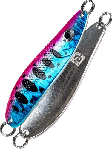 Блесна RB Yuzi - новинка от компании Русская Блесна, которая работает в широком диапазоне условий на быстрых и горных реках. Основной список трофеев это семга, чавыча, таймень, кижуч, сима, голец и другие. Данная приманка максимальна адаптивна в сложных и меняющихся условиях быстрых рек, и ловит разноплановую рыбу. Гибридная форма блесны является предпочтительным вариантом, между узкими и наоборот широкими блеснами. Приманка имеет смещенный центр тяжести, за счет этого обладает хорошей баллистикой и отлично держит речной поток, не выдавливаясь на поверхность. Небольшая выпуклость приманки дает минимальное лобовое сопротивление с обратной связью, давая возможность полностью контролировать проводку, и в тоже время она достаточна для разноплановых проводок, где можно легко менять технику ловли. Компания RB выпустила 4 варианта веса данной приманки: 25, 32, 37 и 42 грамма. Эти основные веса сгенерированы специально для рек Кольского полуострова и водоемов Дальневосточного региона. В цветовую линейку вошли как уже популярные цвета, так и новые современные генерации разработанные успешными рыболовами с учетом последних лет. Данная блесна применяется не только в лососевой программе, она эффективна при ловле традиционных хищников: щуки, судака и жереха. (Рекомендовано использовать на реках с течением). Данные блесны дополнительно оснащаются различными крючками на выбор, это может быть тройник, силовой одинарный крючок, ассист или ассист с октопусом. Крючки подбираются в зависимости от условий ловли в конкретной ситуации и внутренних правил рыболовства данного региона.