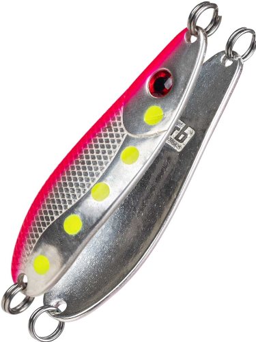 Блесна RB Yuzi - новинка от компании Русская Блесна, которая работает в широком диапазоне условий на быстрых и горных реках. Основной список трофеев это семга, чавыча, таймень, кижуч, сима, голец и другие. Данная приманка максимальна адаптивна в сложных и меняющихся условиях быстрых рек, и ловит разноплановую рыбу. Гибридная форма блесны является предпочтительным вариантом, между узкими и наоборот широкими блеснами. Приманка имеет смещенный центр тяжести, за счет этого обладает хорошей баллистикой и отлично держит речной поток, не выдавливаясь на поверхность. Небольшая выпуклость приманки дает минимальное лобовое сопротивление с обратной связью, давая возможность полностью контролировать проводку, и в тоже время она достаточна для разноплановых проводок, где можно легко менять технику ловли. Компания RB выпустила 4 варианта веса данной приманки: 25, 32, 37 и 42 грамма. Эти основные веса сгенерированы специально для рек Кольского полуострова и водоемов Дальневосточного региона. В цветовую линейку вошли как уже популярные цвета, так и новые современные генерации разработанные успешными рыболовами с учетом последних лет. Данная блесна применяется не только в лососевой программе, она эффективна при ловле традиционных хищников: щуки, судака и жереха. (Рекомендовано использовать на реках с течением). Данные блесны дополнительно оснащаются различными крючками на выбор, это может быть тройник, силовой одинарный крючок, ассист или ассист с октопусом. Крючки подбираются в зависимости от условий ловли в конкретной ситуации и внутренних правил рыболовства данного региона.