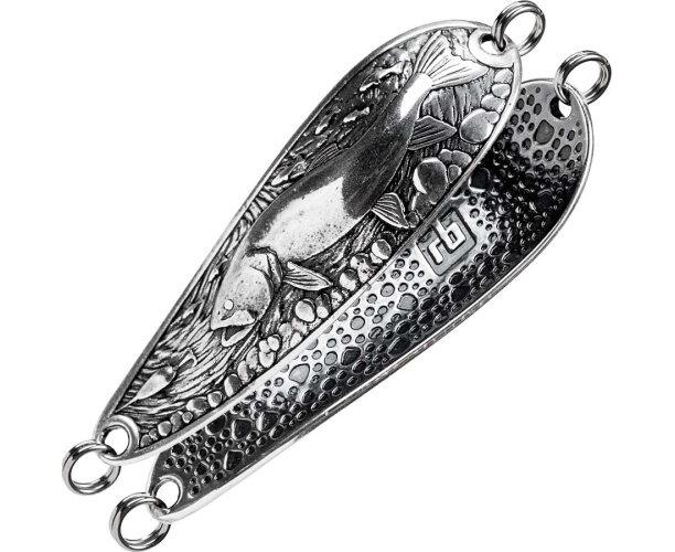 Блесна для мощного и глубокого потока, работает в условиях разноскоростных струй, в порогах, подскальных ямах, в "уловах" ( места с закрученным, обратным течением).