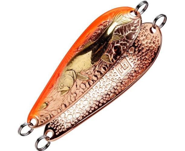 Блесна для мощного и глубокого потока, работает в условиях разноскоростных струй, в порогах, подскальных ямах, в "уловах" ( места с закрученным, обратным течением).
