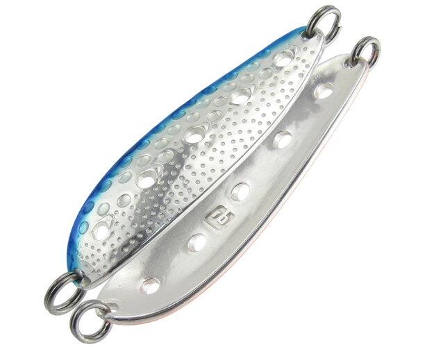 Блесна работает в широком диапазоне скоростей проводки, а также при ловле в отвес, допускает активную анимацию. Как следствие - добычей становятся не только лососи, но и жерех, судак, сом - на юге, озерный голец Таймыра и Кольского полуострова, жерех и щука на больших водохранилищах. Ловля в заброс, троллингом и в отвес - как зимой, так и летом - всегда эта блесна окажется на высоте!
