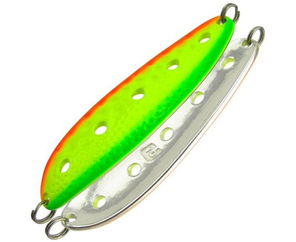Блесна работает в широком диапазоне скоростей проводки, а также при ловле в отвес, допускает активную анимацию. Как следствие - добычей становятся не только лососи, но и жерех, судак, сом - на юге, озерный голец Таймыра и Кольского полуострова, жерех и щука на больших водохранилищах. Ловля в заброс, троллингом и в отвес - как зимой, так и летом - всегда эта блесна окажется на высоте!