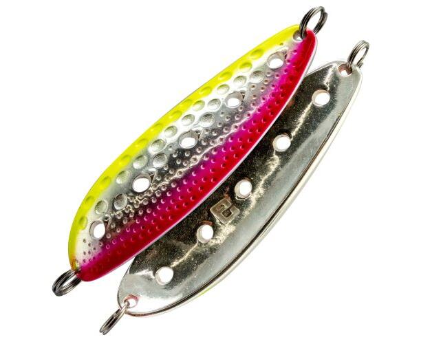 Блесна работает в широком диапазоне скоростей проводки, а также при ловле в отвес, допускает активную анимацию. Как следствие - добычей становятся не только лососи, но и жерех, судак, сом - на юге, озерный голец Таймыра и Кольского полуострова, жерех и щука на больших водохранилищах. Ловля в заброс, троллингом и в отвес - как зимой, так и летом - всегда эта блесна окажется на высоте!