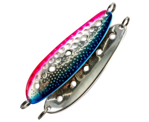 Блесна работает в широком диапазоне скоростей проводки, а также при ловле в отвес, допускает активную анимацию. Как следствие - добычей становятся не только лососи, но и жерех, судак, сом - на юге, озерный голец Таймыра и Кольского полуострова, жерех и щука на больших водохранилищах. Ловля в заброс, троллингом и в отвес - как зимой, так и летом - всегда эта блесна окажется на высоте!