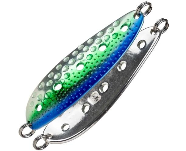 Блесна работает в широком диапазоне скоростей проводки, а также при ловле в отвес, допускает активную анимацию. Как следствие - добычей становятся не только лососи, но и жерех, судак, сом - на юге, озерный голец Таймыра и Кольского полуострова, жерех и щука на больших водохранилищах. Ловля в заброс, троллингом и в отвес - как зимой, так и летом - всегда эта блесна окажется на высоте!