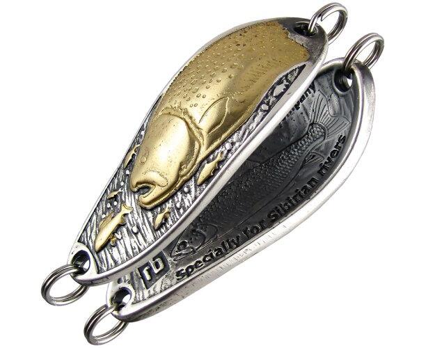 Удивительно красивая блесна с изображением на лицевой стороне головы трофейного тайменя - уникальнейшая приманка, способная работать там, где практически все фабричные блесны останутся не у дел.