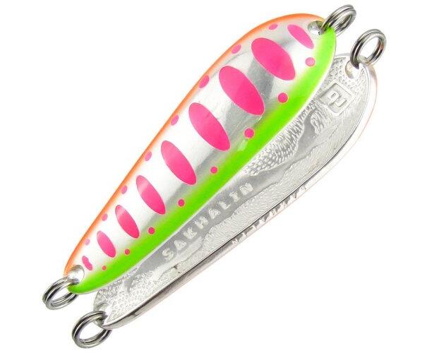 Как следует из названия, блесна RB Sakhalin создавалась прежде всего для ловли проходного тихоокеанского лосося. Но она будет актуальна не только на Сахалине. Реки Кольского полуострова, Сибири и даже Средняя полоса и юг России – везде найдётся применение этой гениальной приманке. Сахалин - это блесны большой воды и приличных скоростей проводки. Их главная задача – привлечение трофейного хищника в условиях сильного течения и/или больших глубин.