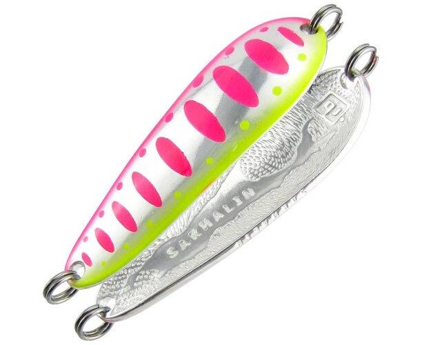 Приманка имеет длину 78 миллиметров при весе в 30 грамм. Активная собственная игра со стабильными достаточно широкими колебаниями средней частоты и «осыпанием» на падении способна соблазнить даже пассивную рыбу, будь то проходной океанский лосось, оседлые таймень и крупный ленок, а так же трофейная щука, которая в определённых условиях предпочитает крупные колеблющиеся блёсны всем другим типам приманок.