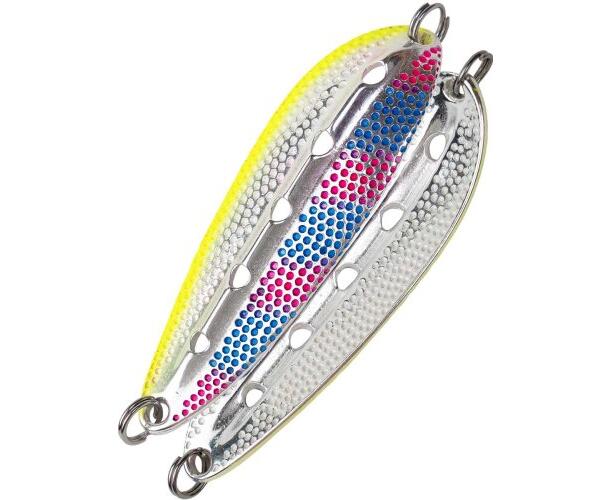 Блесна работает в широком диапазоне скоростей проводки, а также при ловле в отвес, допускает активную анимацию. Как следствие - добычей становятся не только лососи, но и жерех, судак, сом - на юге, озерный голец Таймыра и Кольского полуострова, жерех и щука на больших водохранилищах.