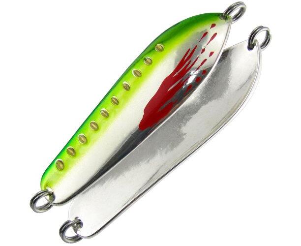 Блесна разработанная компанией "RB" для ловли крупных лососевых рыб, а также трофейной щуки. Широкая форма блесны отлично себя зарекомендовала при ловле чавычи. За счет длинного корпуса, блесна работает в широком диапазоне глубин учитывая приличное течение. Shamanka-хорошо заметная блесна, она великолепно отражает свет благодаря широкой форме, эффективно играя бликами. Благодаря нестандартному "эллипсовидному" отверстию под крепление лески, Shamanka обладает оригинальной игрой. Для успешной ловли в различных или меняющихся условиях, компания разработала блесну в двух вариантах веса это 36 гр и 42 гр. Также были выпущены самые топовые и актуальные расцветки.