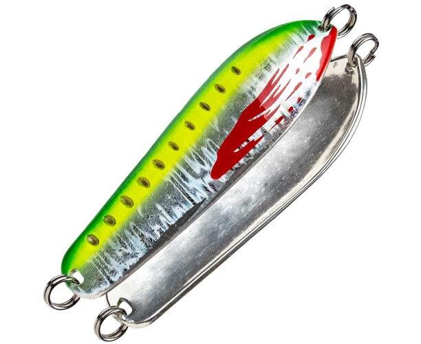 Блесна разработанная компанией "RB" для ловли крупных лососевых рыб, а также трофейной щуки. Широкая форма блесны отлично себя зарекомендовала при ловле чавычи. За счет длинного корпуса, блесна работает в широком диапазоне глубин учитывая приличное течение. Shamanka-хорошо заметная блесна, она великолепно отражает свет благодаря широкой форме, эффективно играя бликами. Благодаря нестандартному "эллипсовидному" отверстию под крепление лески, Shamanka обладает оригинальной игрой. Для успешной ловли в различных или меняющихся условиях, компания разработала блесну в двух вариантах веса это 36 гр и 42 гр. Также были выпущены самые топовые и актуальные расцветки.