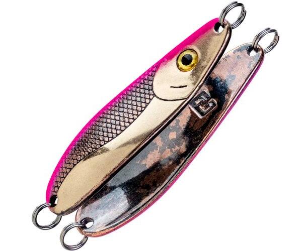 Блесна RB Yuzi - новинка от компании Русская Блесна, которая работает в широком диапазоне условий на быстрых и горных реках. Основной список трофеев это семга, чавыча, таймень, кижуч, сима, голец и другие. Данная приманка максимальна адаптивна в сложных и меняющихся условиях быстрых рек, и ловит разноплановую рыбу. Гибридная форма блесны является предпочтительным вариантом, между узкими и наоборот широкими блеснами. Приманка имеет смещенный центр тяжести, за счет этого обладает хорошей баллистикой и отлично держит речной поток, не выдавливаясь на поверхность. Небольшая выпуклость приманки дает минимальное лобовое сопротивление с обратной связью, давая возможность полностью контролировать проводку, и в тоже время она достаточна для разноплановых проводок, где можно легко менять технику ловли. Компания RB выпустила 4 варианта веса данной приманки: 25, 32, 37 и 42 грамма. Эти основные веса сгенерированы специально для рек Кольского полуострова и водоемов Дальневосточного региона. В цветовую линейку вошли как уже популярные цвета, так и новые современные генерации разработанные успешными рыболовами с учетом последних лет. Данная блесна применяется не только в лососевой программе, она эффективна при ловле традиционных хищников: щуки, судака и жереха. (Рекомендовано использовать на реках с течением). Данные блесны дополнительно оснащаются различными крючками на выбор, это может быть тройник, силовой одинарный крючок, ассист или ассист с октопусом. Крючки подбираются в зависимости от условий ловли в конкретной ситуации и внутренних правил рыболовства данного региона.