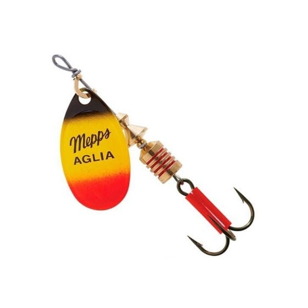 Необычность блесны Mepps Aglia Furia заключается в том, что онастановятся наиболее заметна в контакте с УФ-лучами. Эти лучи глубоко проникают в воду. Aglia Furia блестит еще долго после того, как исчезает в глубине, в отличие от других. Особенно полезны во время пасмурной погоды, в глубинах или в грязных водах. Угол вращения лепестка 60°