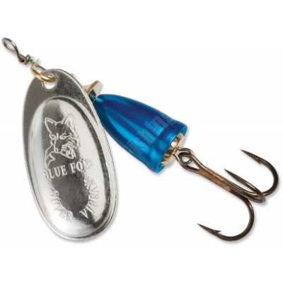 Вращающиеся блесны Vibrax Original от фирмы Blue Fox - одни из самых знаменитых и востребованных приманок в своем классе. Эта серия стала практически визитной карточкой фирмы. Выпуск первых моделей положил начало целого семейства вращающихся блесен, отличающихся отменными рабочими данными и уловистостью. Приманки обладают конусообразным литым сердечником, конструкция которого препятствует залипанию лепестка во время проводки. Сердечник блесны изготовлен из цинка, а ось выполнена из нержавеющей стали. Лепесток приманки изготовлен из латуни и имеет золотистую, серебристую или медную окраску. Лепесток заводится сразу же после после начала проводки. Во время движения сердечник создает низкочастотные волны, провоцирующие хищника на поиск приманки. Приманка прекрасно работает на любой скорости проводки. При вращении конструкцией постоянно поддерживается 45-градусный угол отклонения лепестка. Особая конструкция Vibrax Original препятствует закручиванию лески. На эти блесны охотно клюют почти все хищники, обитающие в отечественных водоемах.