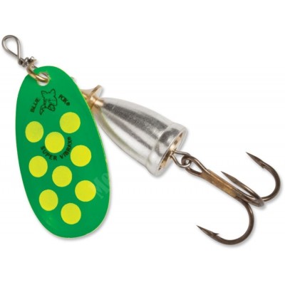 Вращающиеся блесны Vibrax Hot Pepper от фирмы Blue Fox благодаря “пятнистой” окраске лепестка обладают необычайной уловистостью. Такая привлекательная окраска не оставит равнодушным ни одного хищника. Сердечник блесны изготовлен из цинка, а ось выполнена из нержавеющей стали. Лепесток приманки изготовлен из латуни и имеет хромовое покрытие. Особая конструкция Vibrax Hot Pepper препятствует закручиванию лески. Блесны этой серии будут особенно эффективны в теплый летний период, во время больших скоплений насекомых. На них охотно клюют голавли, крупные окуни, а также язь и форель.