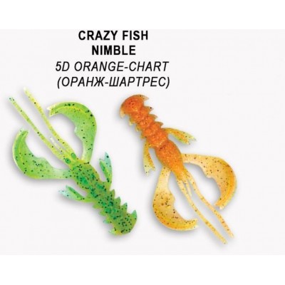 Приманка имитирует речного рака, который является одним из основных объектов питания крупного окуня. Crazy Fish Nimble отличается очень мощной игрой и благодаря активным клешням включается в работу уже на падении. Уникальная форма тела позволяет использовать шарнирные монтажи как с открытым, так и с офсетным крючком. Допускается также использование классической джиг-головки. На подгруженном офсете приманка тонет по спирали, вкусно поигрывая клешнями.