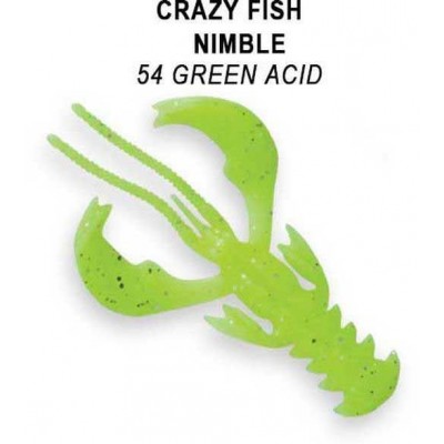 Приманка имитирует речного рака, который является одним из основных объектов питания крупного окуня. Crazy Fish Nimble отличается очень мощной игрой и благодаря активным клешням включается в работу уже на падении. Уникальная форма тела позволяет использовать шарнирные монтажи как с открытым, так и с офсетным крючком. Допускается также использование классической джиг-головки. На подгруженном офсете приманка тонет по спирали, вкусно поигрывая клешнями.