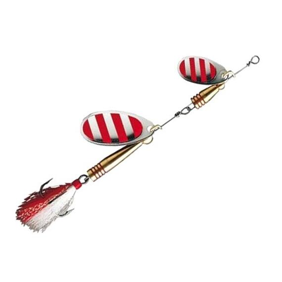Эта блесна оборудована двумя вращающимися лопастями, которые создают заманчивые вибрации и манящее движение в воде, что делает её особенно привлекательной перед рыбой. Комбинация двух лопастей обеспечивает увеличенное колебание и эффективность приманки, что делает её более заметной и привлекательной для хищной рыбы.