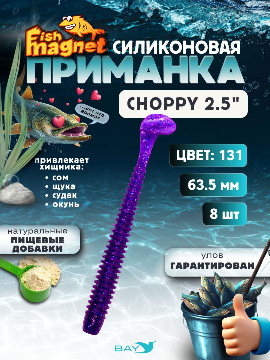 Силиконовая приманка Fish Magnet CHOPPY 2.5, съедобная, 63.5 мм, цвет 131, 8 шт для хищной рыбы