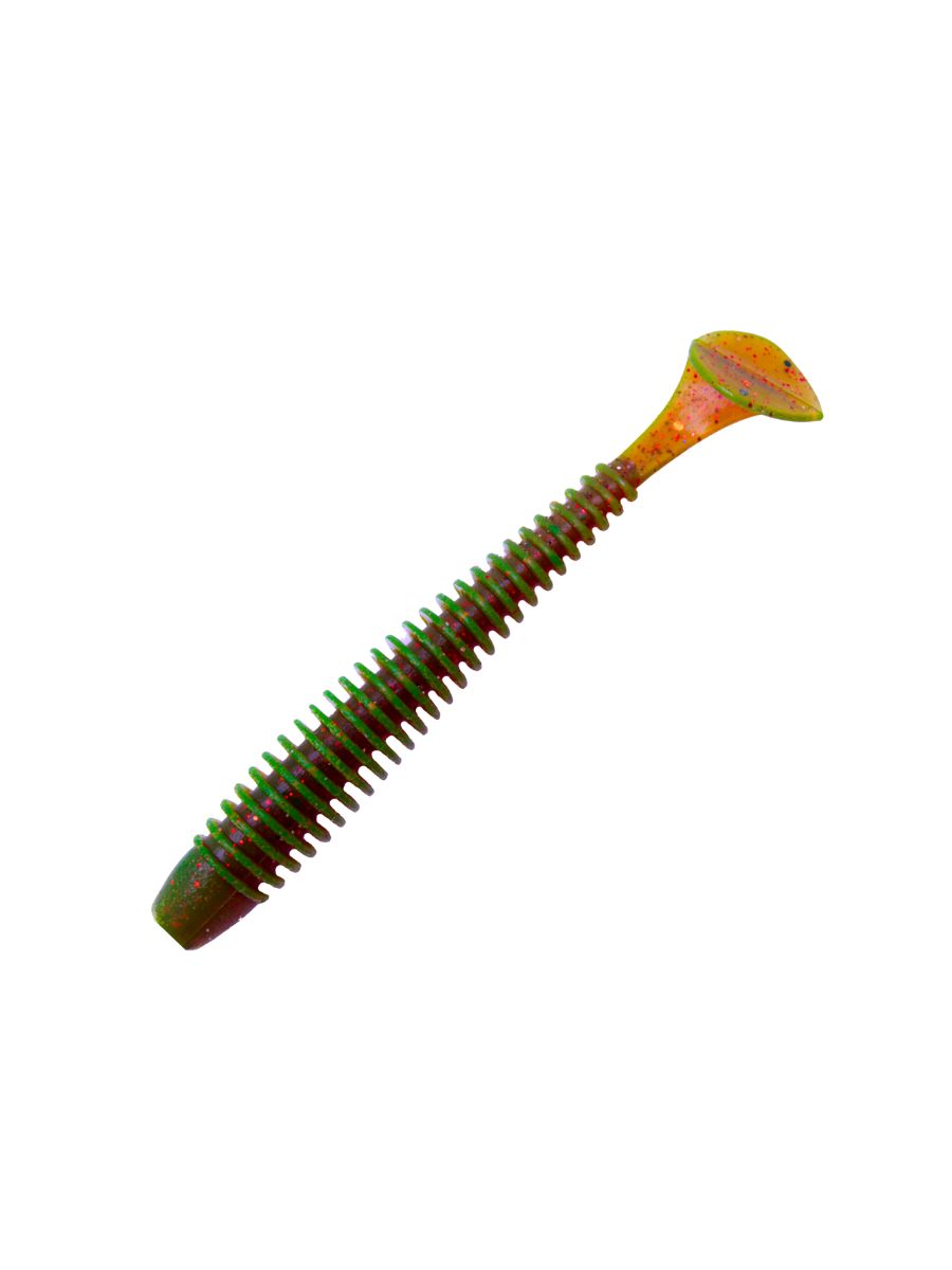 Ребристое тело и ультратонкий хвост обеспечивают активную игру даже на минимальных скоростях проводки. Благодаря продуманной форме туловища приманка отлично работает со всеми популярными видами монтажа: — джиг-головка — шарнир — «drop-shot» — «Каролина» — отводной поводок и другие