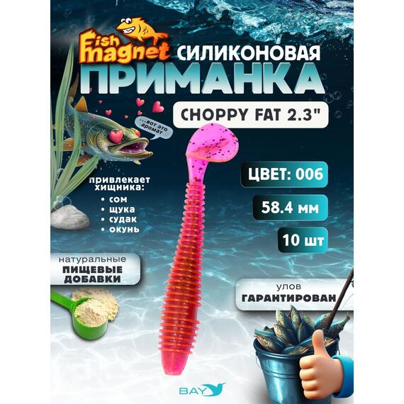 Fish Magnet CHOPPY FAT 2.3″ — это мощная съедобная виброприманка, выполненная из мягкого силикона с добавлением пищевых ароматизаторов, которые увеличивают количество уверенных атак хищника.