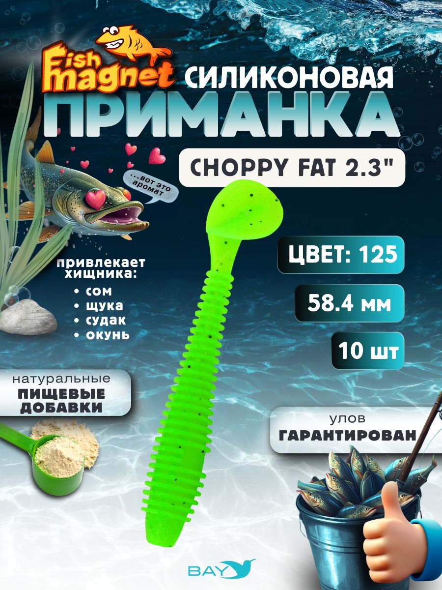 Силиконовая приманка Fish Magnet CHOPPY FAT 2.3", съедобная, 58.4 мм, цвет 125, 10 шт для хищной рыбы