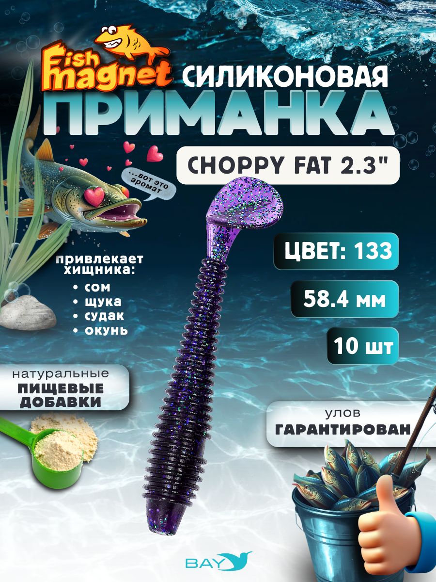 Fish Magnet CHOPPY FAT 2.3″ — это мощная съедобная виброприманка, выполненная из мягкого силикона с добавлением пищевых ароматизаторов, которые увеличивают количество уверенных атак хищника.