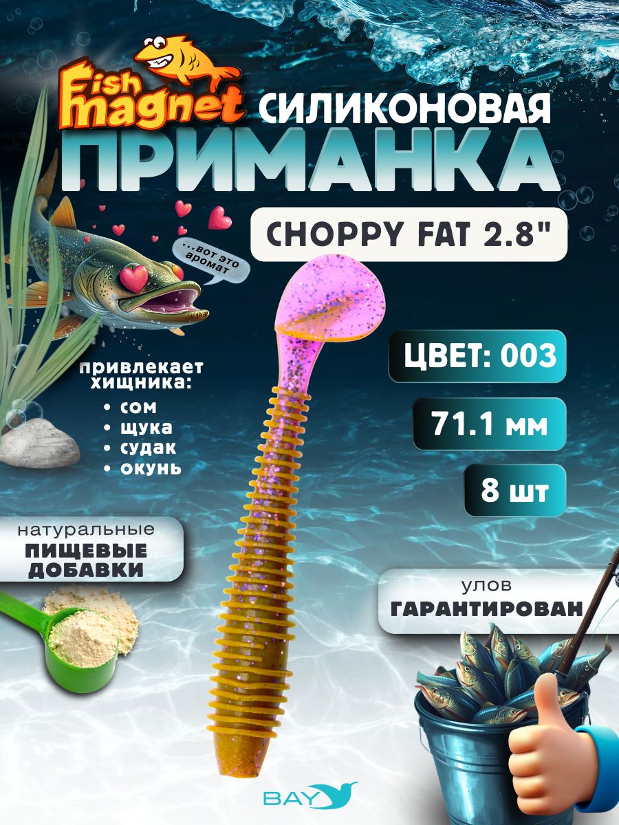 Силиконовая приманка Fish Magnet CHOPPY FAT 2.8", съедобная, 71.1 мм, цвет 003, 8 шт для хищной рыбы