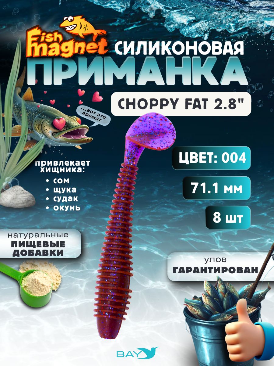 Fish Magnet CHOPPY FAT 2.8″ — это мощная съедобная виброприманка, выполненная из мягкого силикона с добавлением пищевых ароматизаторов, которые увеличивают количество уверенных атак хищника.