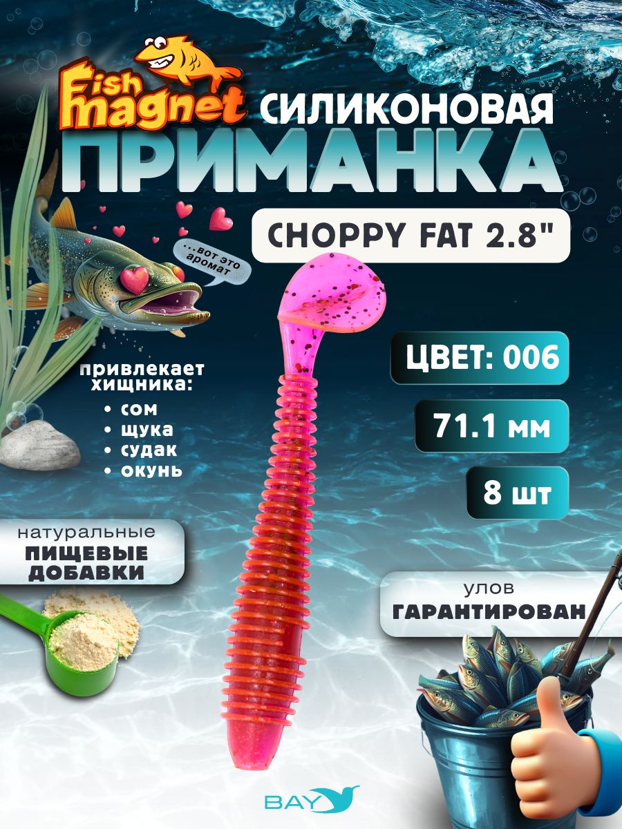 Силиконовая приманка Fish Magnet CHOPPY FAT 2.8", съедобная, 71.1 мм, цвет 006, 8 шт для хищной рыбы