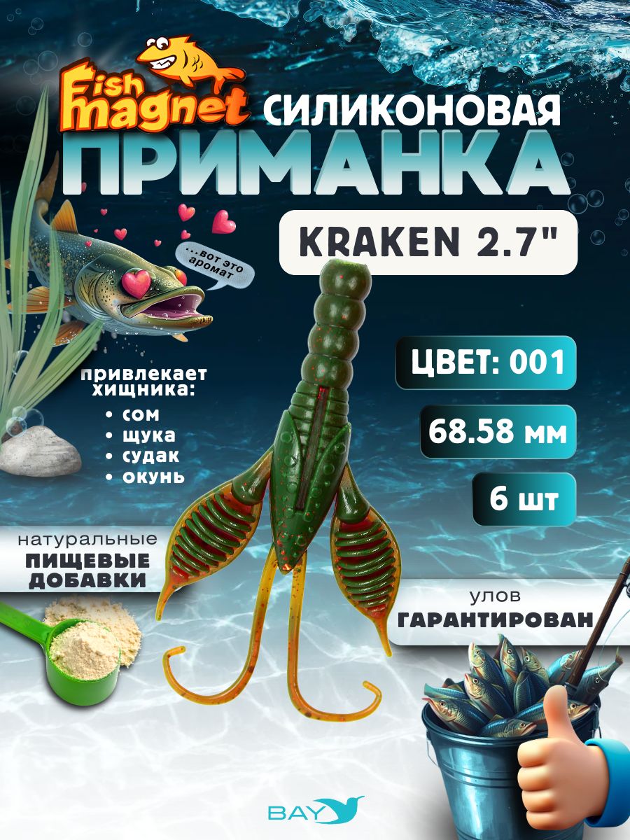 Fish Magnet KRAKEN – это не просто силиконовая приманка, а уникальная авторская разработка для результативной рыбалки. Ее форма сочетает в себе признаки кольчатого червя и рака, что делает ее максимально привлекательной для хищной рыбы, которая ищет нестандартную и аппетитную добычу.