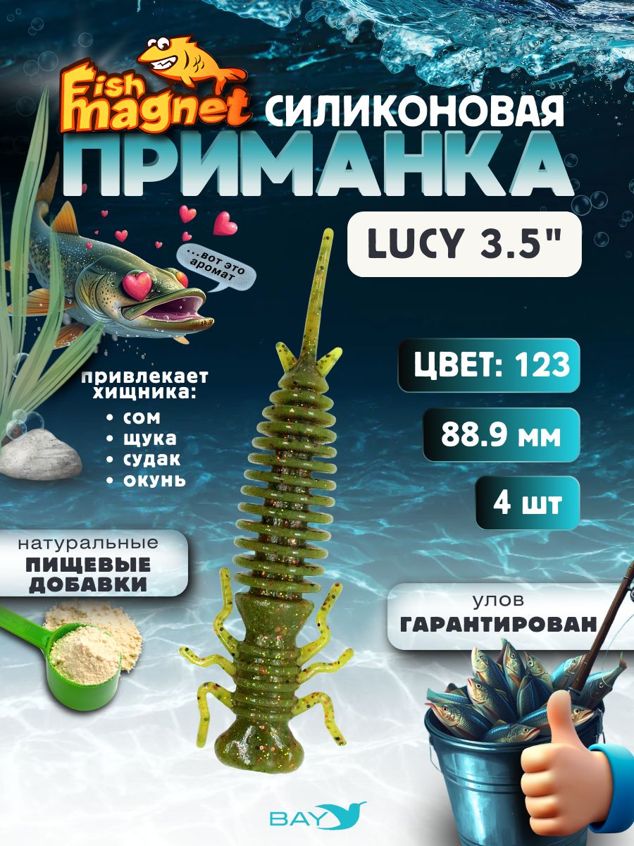 Представляем вам секретное оружие для рыбалки — силиконовую приманку Fish Magnet LUCY. Это не просто мушка или обманка, а высокодетализированная съедобная имитация личинки стрекозы — излюбленного природного корма для большинства обитателей наших водоемов.