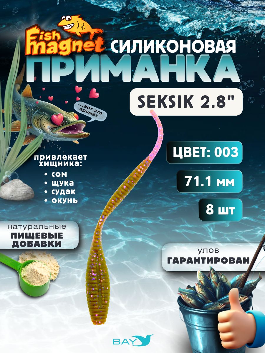 Силиконовая приманка Fish Magnet SEKSIK 2.8″ — это универсальная пассивная приманка нового поколения, способная удивить своей игрой даже самого осторожного хищника. Выполнена из мягкого высококачественного силикона с добавлением пищевых аттрактантов, что делает ее более привлекательной и удерживает рыбу в точке атаки дольше.