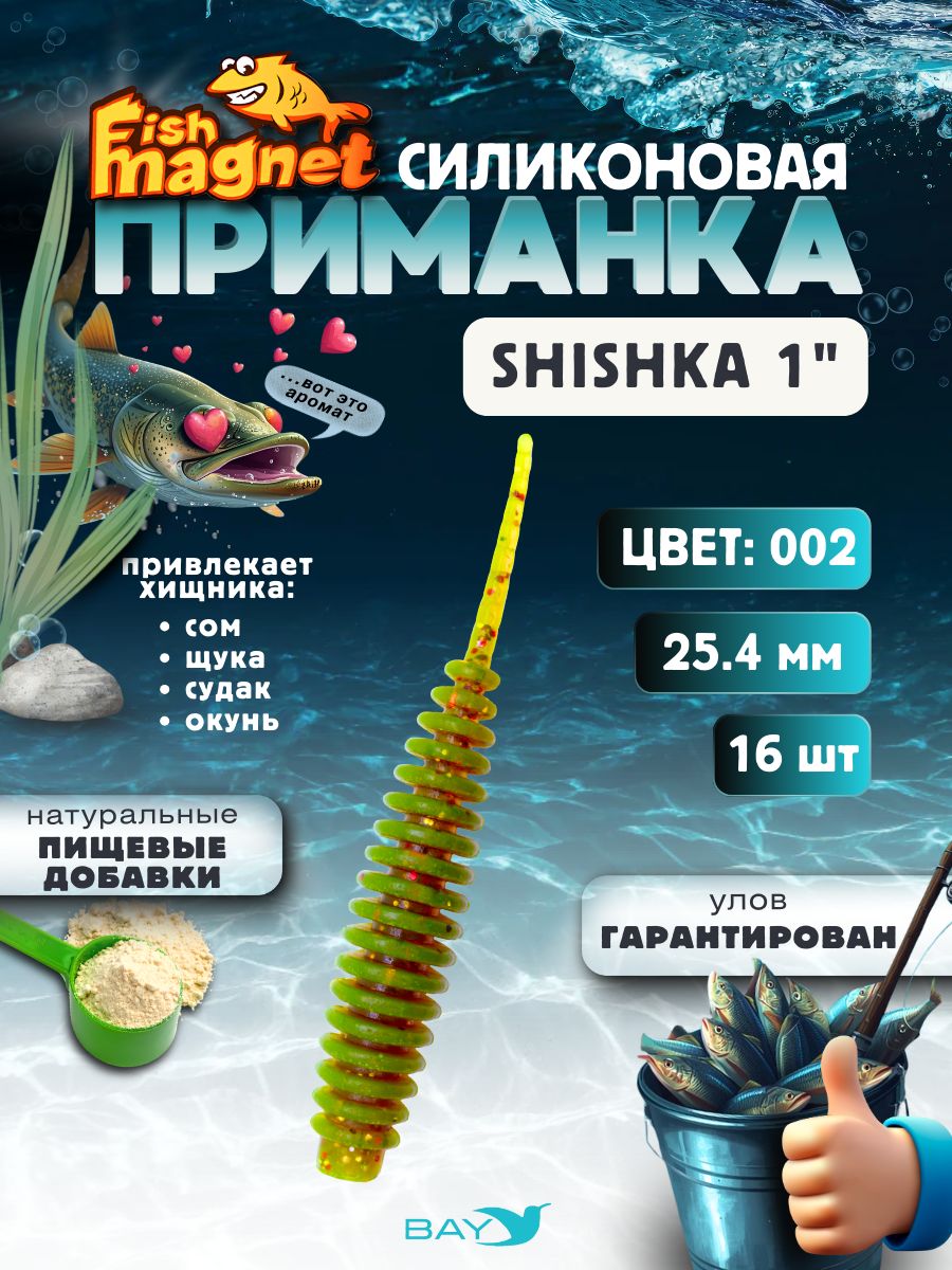 Силиконовая приманка Fish Magnet SHISHKA 1″ — высокоэффективная микроджиговая приманка, созданная для ловли осторожного и привередливого хищника. Выполнена из очень мягкого съедобного силикона с добавлением пищевых аттрактантов и имитирует одного из видов кольчатых червей — естественный объект питания большинства рыб.