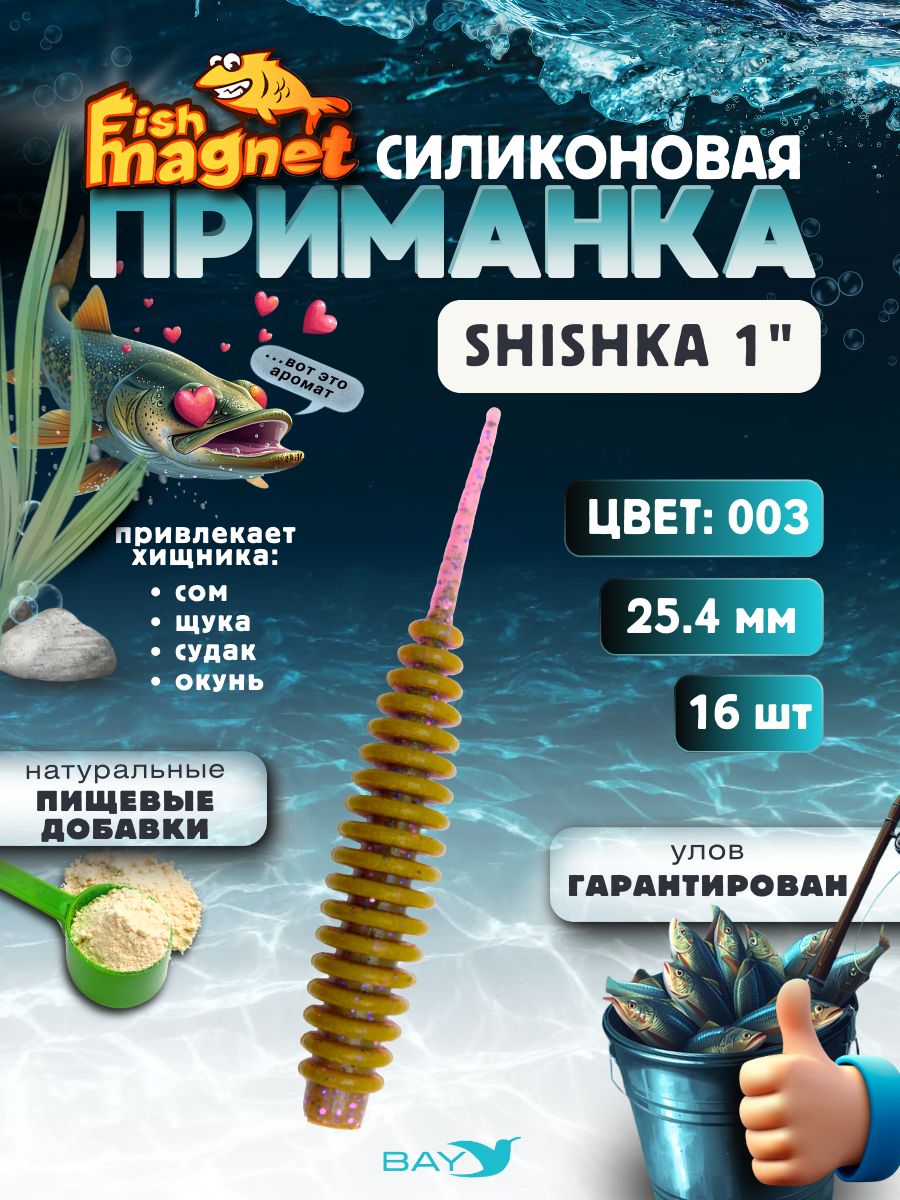 Силиконовая приманка Fish Magnet SHISHKA 1″ — высокоэффективная микроджиговая приманка, созданная для ловли осторожного и привередливого хищника. Выполнена из очень мягкого съедобного силикона с добавлением пищевых аттрактантов и имитирует одного из видов кольчатых червей — естественный объект питания большинства рыб.