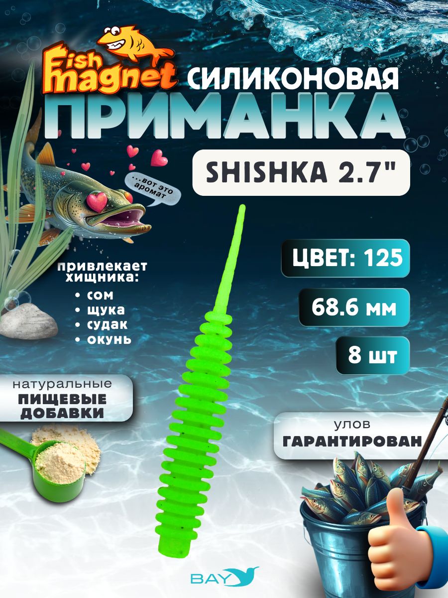 Силиконовая приманка Fish Magnet SHISHKA 2.7″ — высокоэффективная микроджиговая приманка, созданная для ловли осторожного и привередливого хищника. Выполнена из очень мягкого съедобного силикона с добавлением пищевых аттрактантов и имитирует одного из видов кольчатых червей — естественный объект питания большинства рыб.