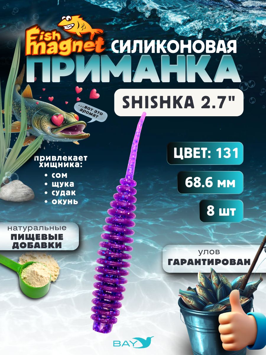 Силиконовая приманка Fish Magnet SHISHKA 2.7″ — высокоэффективная микроджиговая приманка, созданная для ловли осторожного и привередливого хищника. Выполнена из очень мягкого съедобного силикона с добавлением пищевых аттрактантов и имитирует одного из видов кольчатых червей — естественный объект питания большинства рыб.