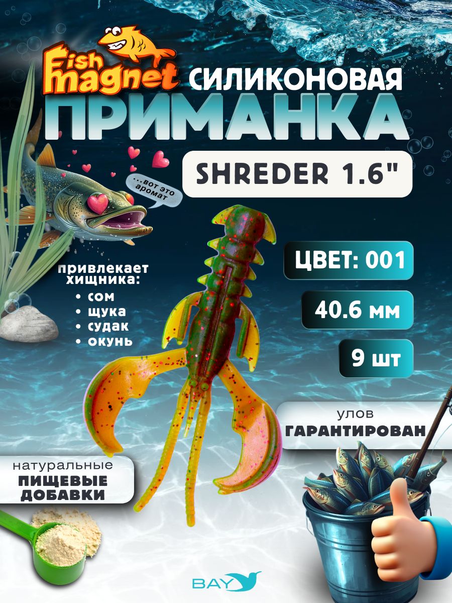 Силиконовая приманка Fish Magnet SHREDER выполнена из мягкого силикона с добавлением пищевых добавок, представляющая собой имитацию рака с очень активной игрой клешнями, которые после попадания в водоём сразу начинают попеременно или синхронно колебаться даже во время одной проводки в зависимости от потоков воды. Этот эффект оживляет приманку, провоцирую хищника на атаку.Приманка работает на всех стадиях проводки, в том числе при медленном свободном падении, «вкусно» размахивая лапами и покачивая всем телом, она очень активна на подъеме приманки и конечно же в толще воды, при равномерной проводке.Наилучший результат приманка показывает на классических джиговых монтажах с джиг-головкой или «чебурашкой», но благодаря боковым лапам-стабилизаторам и выверенной геометрии тела, с огромным успехом применяется и на неогруженных монтажах с открытым крючком или офсетом. Отводной поводок, Dropshot, Carolina rig, Texas rig — это его стихия.