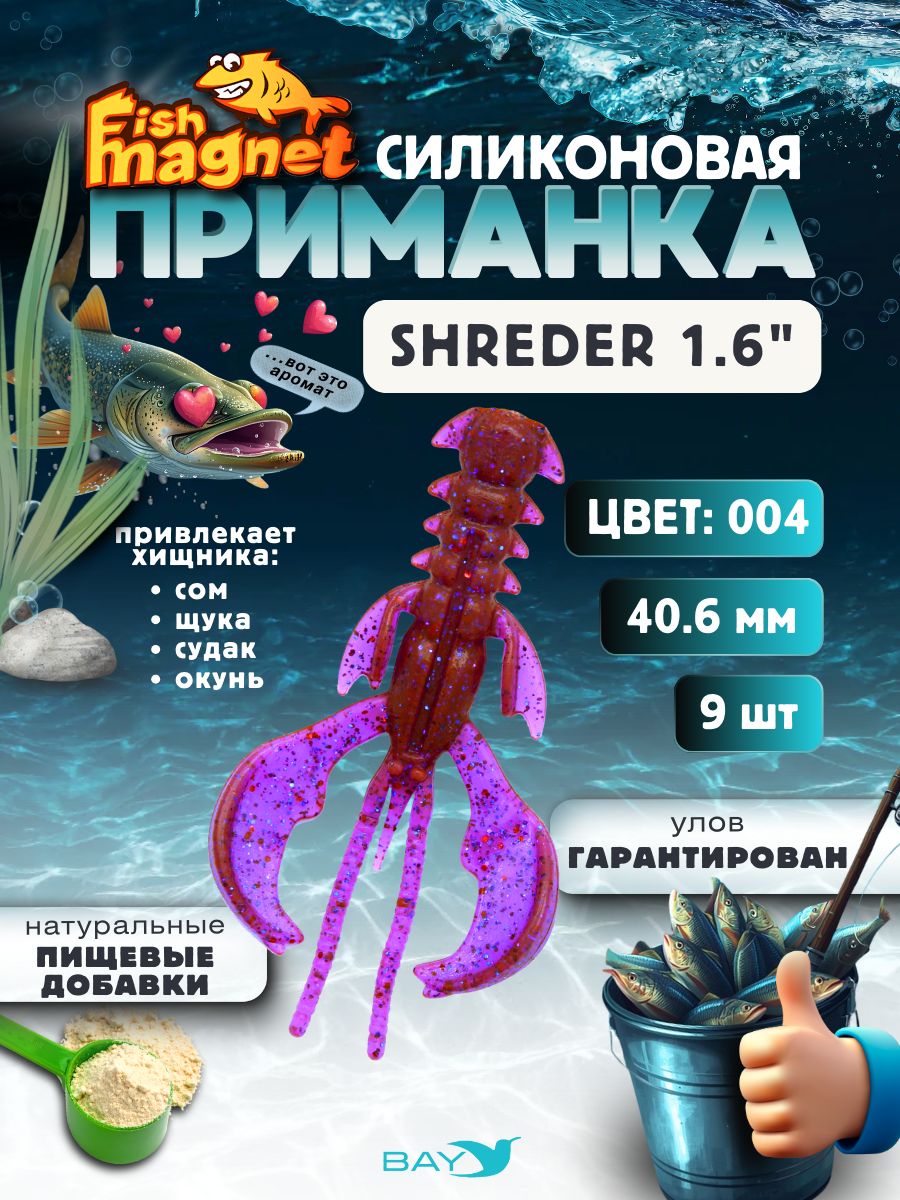 Силиконовая приманка Fish Magnet SHREDER выполнена из мягкого силикона с добавлением пищевых добавок, представляющая собой имитацию рака с очень активной игрой клешнями, которые после попадания в водоём сразу начинают попеременно или синхронно колебаться даже во время одной проводки в зависимости от потоков воды. Этот эффект оживляет приманку, провоцирую хищника на атаку.Приманка работает на всех стадиях проводки, в том числе при медленном свободном падении, «вкусно» размахивая лапами и покачивая всем телом, она очень активна на подъеме приманки и конечно же в толще воды, при равномерной проводке.Наилучший результат приманка показывает на классических джиговых монтажах с джиг-головкой или «чебурашкой», но благодаря боковым лапам-стабилизаторам и выверенной геометрии тела, с огромным успехом применяется и на неогруженных монтажах с открытым крючком или офсетом. Отводной поводок, Dropshot, Carolina rig, Texas rig — это его стихия.