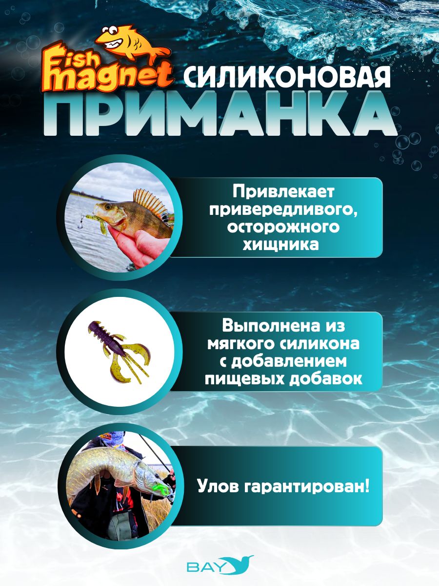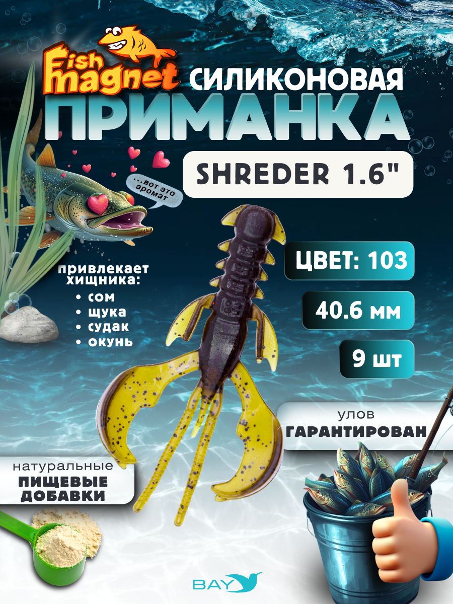 Силиконовая приманка Fish Magnet SHREDER выполнена из мягкого силикона с добавлением пищевых добавок, представляющая собой имитацию рака с очень активной игрой клешнями, которые после попадания в водоём сразу начинают попеременно или синхронно колебаться даже во время одной проводки в зависимости от потоков воды. Этот эффект оживляет приманку, провоцирую хищника на атаку.Приманка работает на всех стадиях проводки, в том числе при медленном свободном падении, «вкусно» размахивая лапами и покачивая всем телом, она очень активна на подъеме приманки и конечно же в толще воды, при равномерной проводке.Наилучший результат приманка показывает на классических джиговых монтажах с джиг-головкой или «чебурашкой», но благодаря боковым лапам-стабилизаторам и выверенной геометрии тела, с огромным успехом применяется и на неогруженных монтажах с открытым крючком или офсетом. Отводной поводок, Dropshot, Carolina rig, Texas rig — это его стихия.