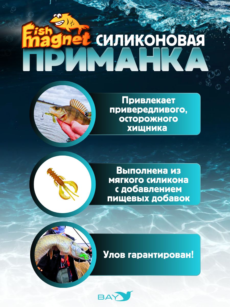 Силиконовая приманка Fish Magnet SHREDER выполнена из мягкого силикона с добавлением пищевых добавок, представляющая собой имитацию рака с очень активной игрой клешнями, которые после попадания в водоём сразу начинают попеременно или синхронно колебаться даже во время одной проводки в зависимости от потоков воды. Этот эффект оживляет приманку, провоцирую хищника на атаку.Приманка работает на всех стадиях проводки, в том числе при медленном свободном падении, «вкусно» размахивая лапами и покачивая всем телом, она очень активна на подъеме приманки и конечно же в толще воды, при равномерной проводке.Наилучший результат приманка показывает на классических джиговых монтажах с джиг-головкой или «чебурашкой», но благодаря боковым лапам-стабилизаторам и выверенной геометрии тела, с огромным успехом применяется и на неогруженных монтажах с открытым крючком или офсетом. Отводной поводок, Dropshot, Carolina rig, Texas rig — это его стихия.