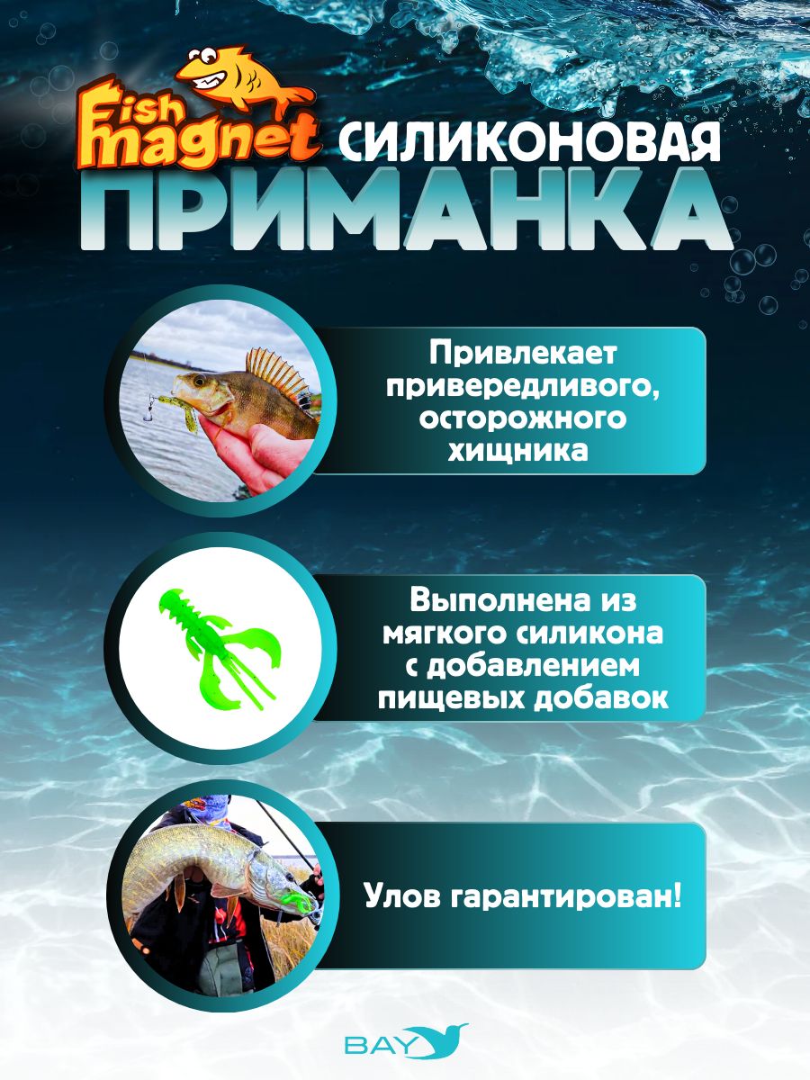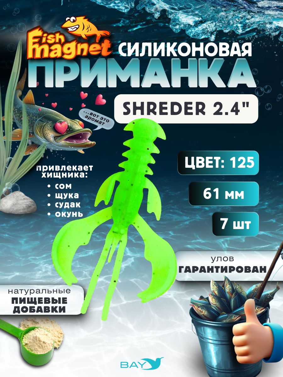 Силиконовая приманка Fish Magnet SHREDER выполнена из мягкого силикона с добавлением пищевых добавок, представляющая собой имитацию рака с очень активной игрой клешнями, которые после попадания в водоём сразу начинают попеременно или синхронно колебаться даже во время одной проводки в зависимости от потоков воды. Этот эффект оживляет приманку, провоцирую хищника на атаку.Приманка работает на всех стадиях проводки, в том числе при медленном свободном падении, «вкусно» размахивая лапами и покачивая всем телом, она очень активна на подъеме приманки и конечно же в толще воды, при равномерной проводке.Наилучший результат приманка показывает на классических джиговых монтажах с джиг-головкой или «чебурашкой», но благодаря боковым лапам-стабилизаторам и выверенной геометрии тела, с огромным успехом применяется и на неогруженных монтажах с открытым крючком или офсетом. Отводной поводок, Dropshot, Carolina rig, Texas rig — это его стихия.