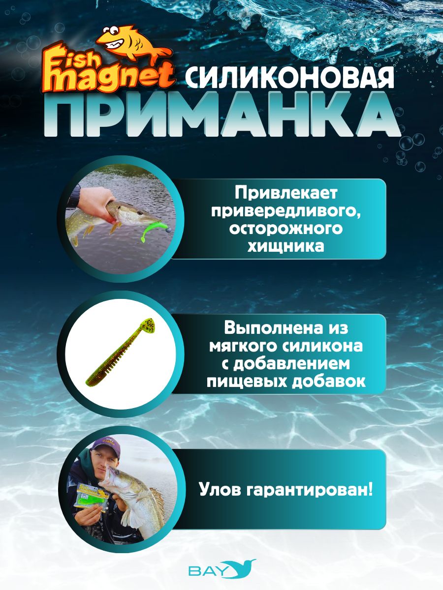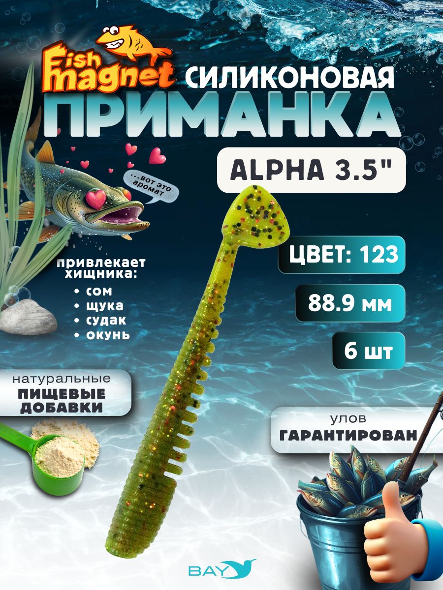 Силиконовая приманка мягкая съедобная Fish Magnet Alpha 3.5" (88,9 мм), цвет 123, 6 шт на рыбалку для щуки и судака