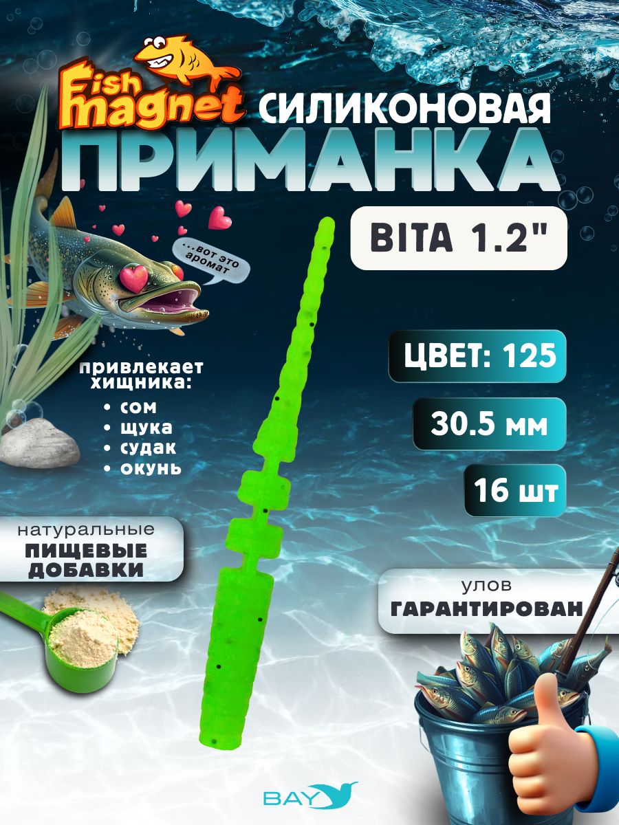 Силиконовая приманка пассивная съедобная Fish Magnet BITA 1.2" (30.5 мм), цвет 125, 16 шт на рыбалку для окуня