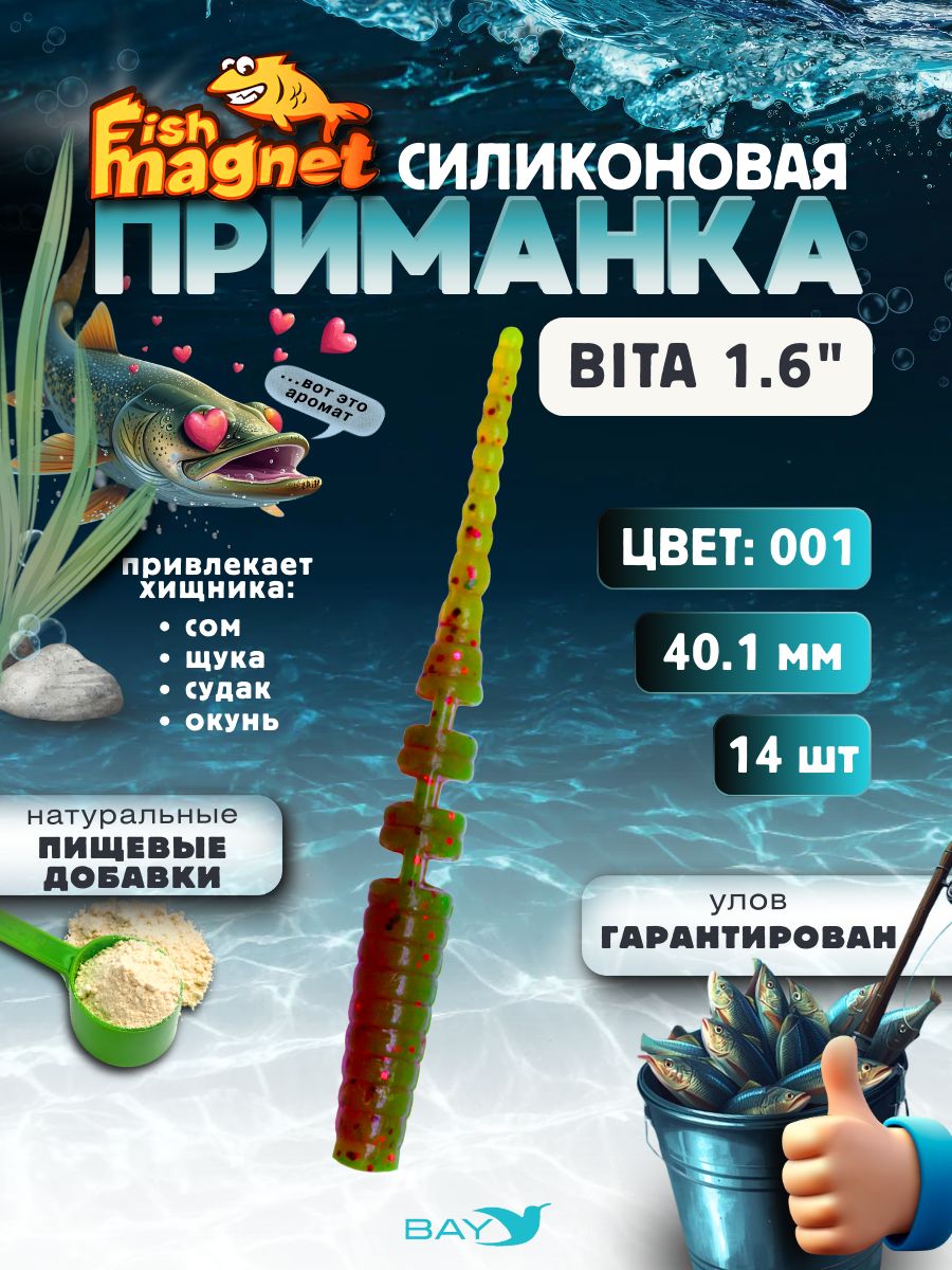 Силиконовая приманка пассивная съедобная Fish Magnet BITA 1.6" (40.1 мм), цвет 001, 14 шт на рыбалку для окуня