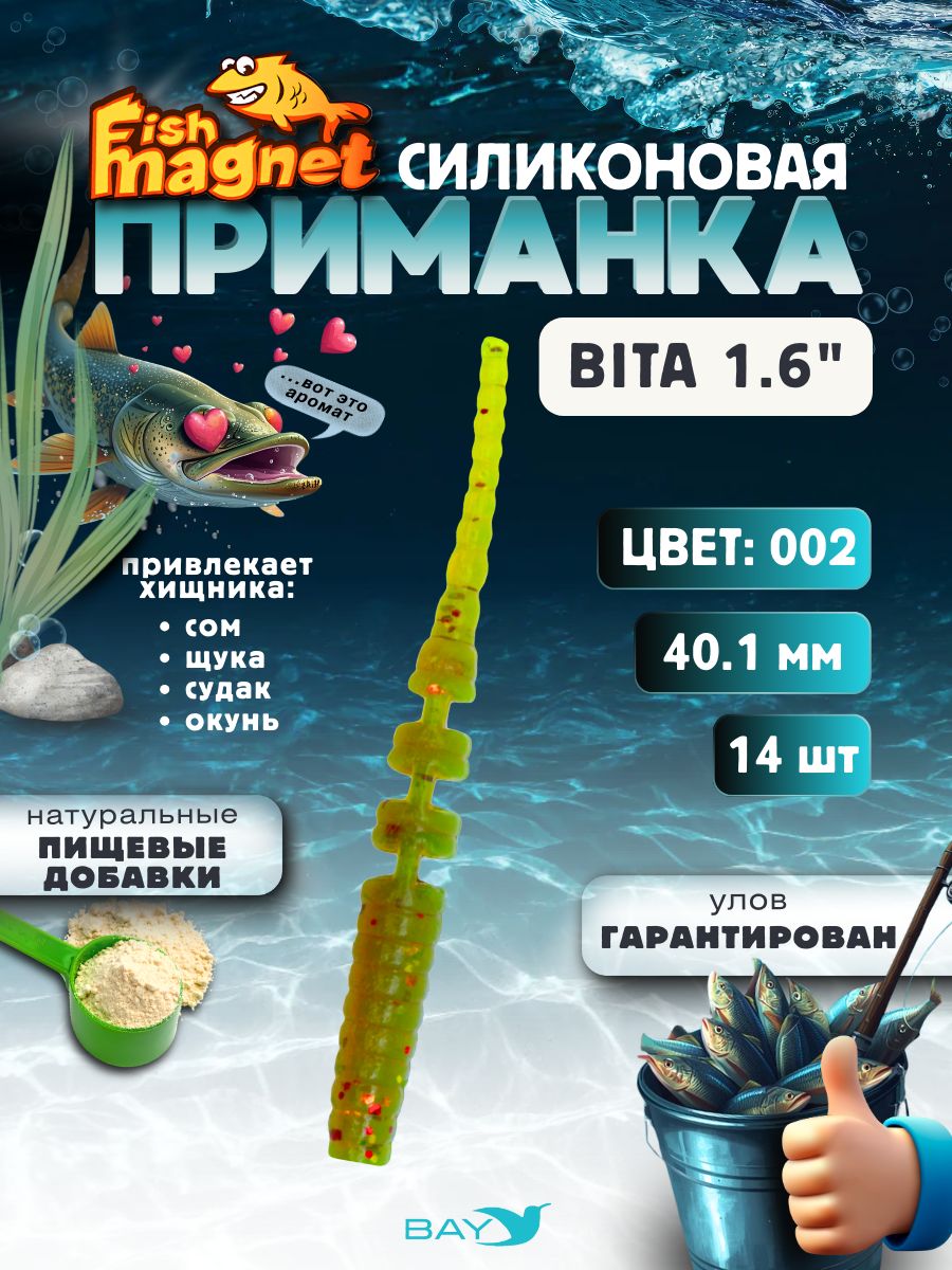 Силиконовая приманка пассивная съедобная Fish Magnet BITA 1.6" (40.1 мм), цвет 002, 14 шт на рыбалку для окуня